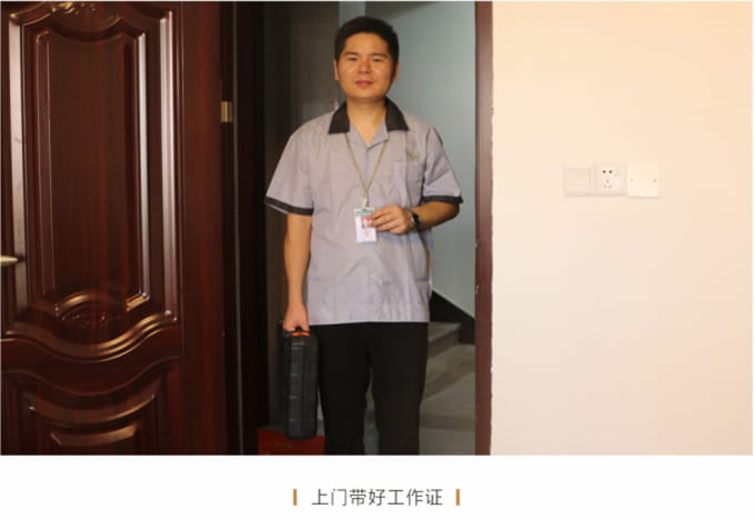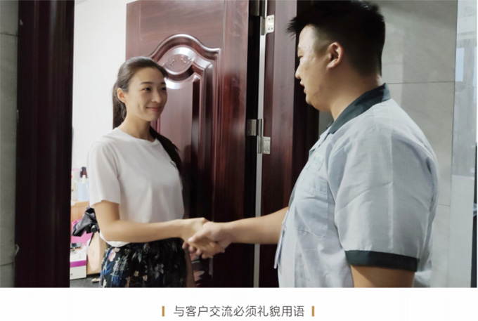 必須按照客戶約定,至少提前5分鐘上門,見到客戶時需自我介紹,并出示上崗證和名片,在進入顧客家前應(yīng)穿上自備的鞋套。征得客戶同意后開始維修,嚴禁亂收費。