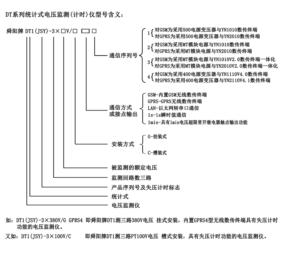 舜陽(yáng)牌DT系列統(tǒng)計(jì)式電壓監(jiān)測(cè)計(jì)時(shí)儀型號(hào)含義