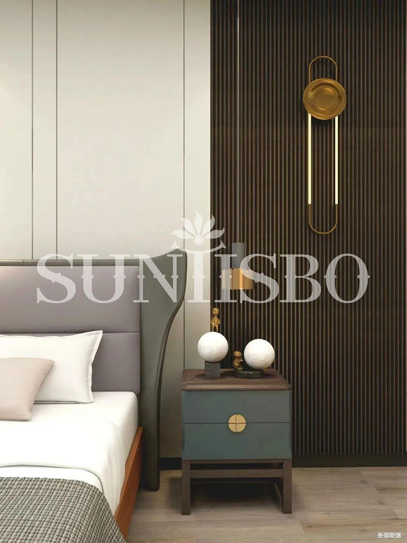 對稱美是家裝時的常見設(shè)計,但在臥室放置兩個笨重的床頭柜不僅占據(jù)空間布局,日常清理復(fù)雜,而且收納功能也一般。床頭柜通常是用來放置一些小物件,例如:手機、書、臺燈或者鬧鐘等,因此一個簡潔的邊幾就能滿足日常需求。