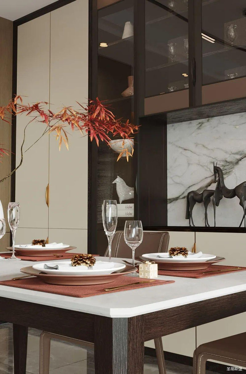一字型布局的開放空間,強化了餐廚的開闊感,延伸了空間的舒朗視野。純白調(diào)的天然餐桌,與周圍空間融為一體,映襯著空間的純潔美好。意式簡約的紅色餐椅,線條簡潔凌厲到能輕易征服人心,一隅紅楓點綴其中,視覺層次感瞬間得到提升,讓人于靜簡和清歡之間,感受人生百味。