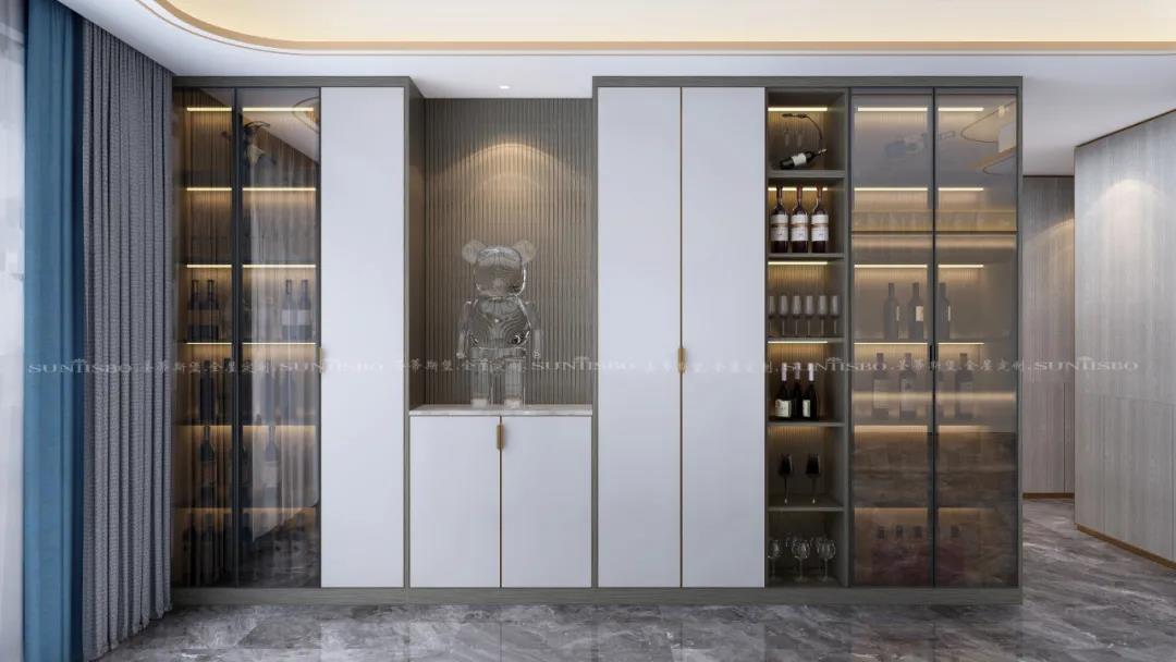 在細(xì)節(jié)設(shè)計之中,設(shè)計師以實木+紋理,營造一派簡約輕奢之感,看似沒有繁雜的元素修飾,卻讓家多了一份高級感。