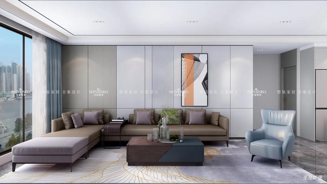 優(yōu)雅淺灰L型定制柜與紋理清晰的大理石組合電視墻,滿足了業(yè)主審美與實(shí)用的雙向需求。一張淡藍(lán)色的休閑椅,讓業(yè)主能感受到亮麗明艷色彩之外的獨(dú)特,低調(diào)不張揚(yáng),卻在溫潤中傳遞出色彩的力量。通過紋理清晰的護(hù)墻為底,為柔和優(yōu)雅的靜態(tài)客廳增添了層次感十足的空間律動。