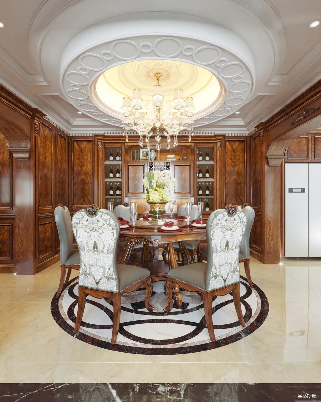女業(yè)主是留美歸來,非常喜歡美式用餐氛圍,設(shè)計師以懷舊雅致作為室內(nèi)基調(diào),整體定制柜與護墻,都透著美式的自然懷舊,即使褪去家具軟裝,僅存留硬體結(jié)構(gòu),仍透散著優(yōu)雅純凈的美式韻味。