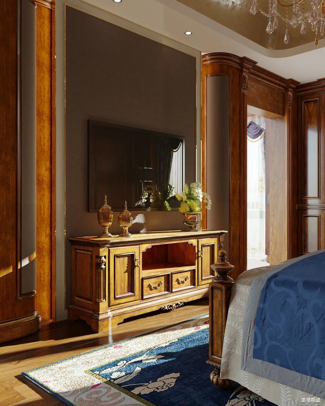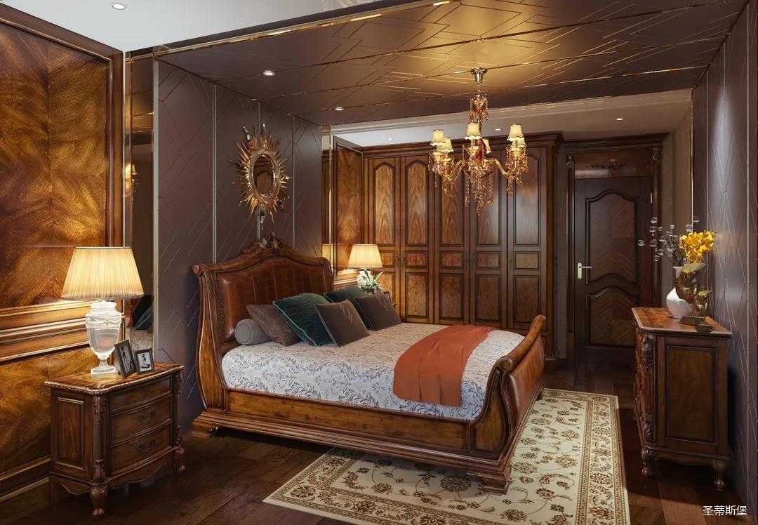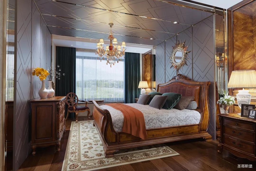主臥整體設(shè)計是美式與現(xiàn)代的完美整合,既保留了純正美式的形和實木雕刻藝術(shù),又具有濃重的美式配色,濃濃的藝術(shù)氣息不自覺在浪漫的美式空間流淌。流暢的弧線花飾以及豐富的木作線條別具匠心。大氣穩(wěn)重與舒適雅致并重,并借由開放的布局、靈活的動線,共同促成了整個空間極具復(fù)古浪漫的情調(diào)。