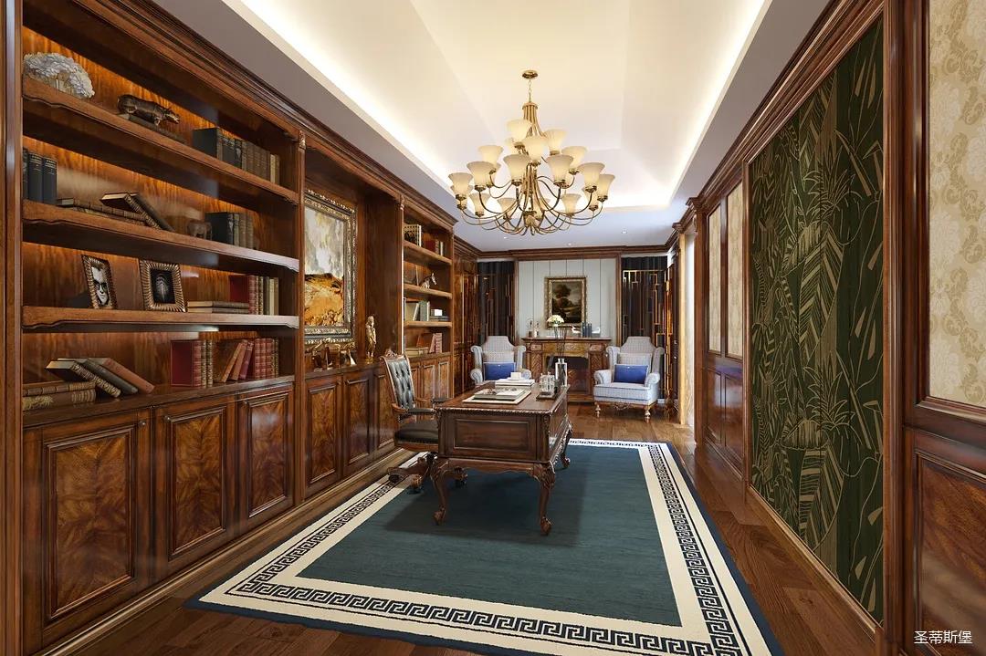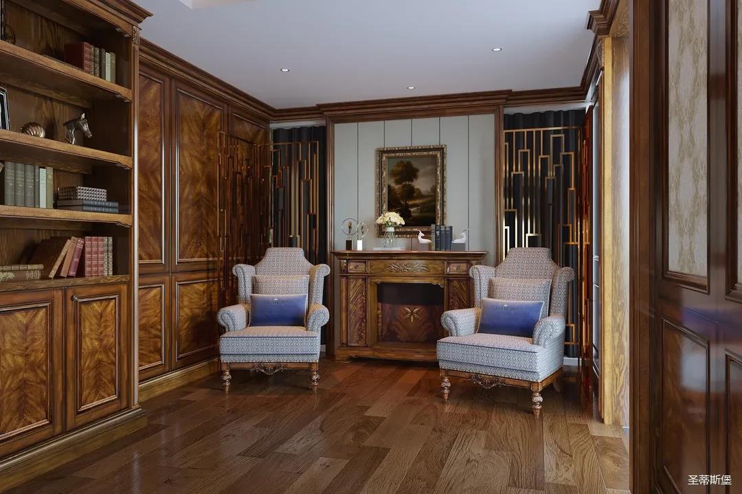 邁進書房,仿佛就來到另一個清麗的世界,拋開身后的塵囂,恍如隔世般撫慰著辛勞一天的身心。每一物件都經(jīng)過設(shè)計師的精雕細琢,不管是布藝的紋理,木質(zhì)的雕飾,亦或是真皮的質(zhì)感,都讓大美的豪華一目了然。粗狂中透著柔美的線條,渾厚復(fù)古的色調(diào),讓空間顯得深沉而含蓄,置身其中即可感受到傳統(tǒng)的歷史痕跡與渾厚的文化底蘊。