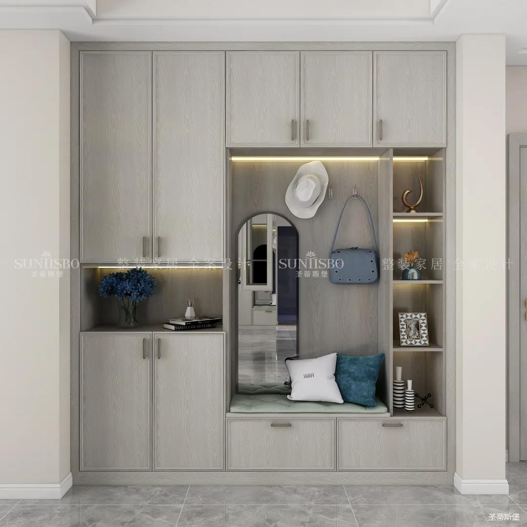 衣帽間是女主特別要求的,設(shè)計是將房間打造成衣帽間系統(tǒng),采用L型布局,壁掛式設(shè)計,讓穿搭動線更順暢,視覺上也更通透,可直觀的展示女主人穿搭品味。玻璃層板與背板花色的結(jié)合,精致靈動,成為時尚與輕奢的寫照,封閉區(qū)衣柜的合理格局規(guī)劃,完美詮釋現(xiàn)代輕奢風(fēng)于當(dāng)代定制中的前瞻性。
