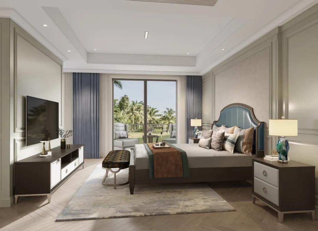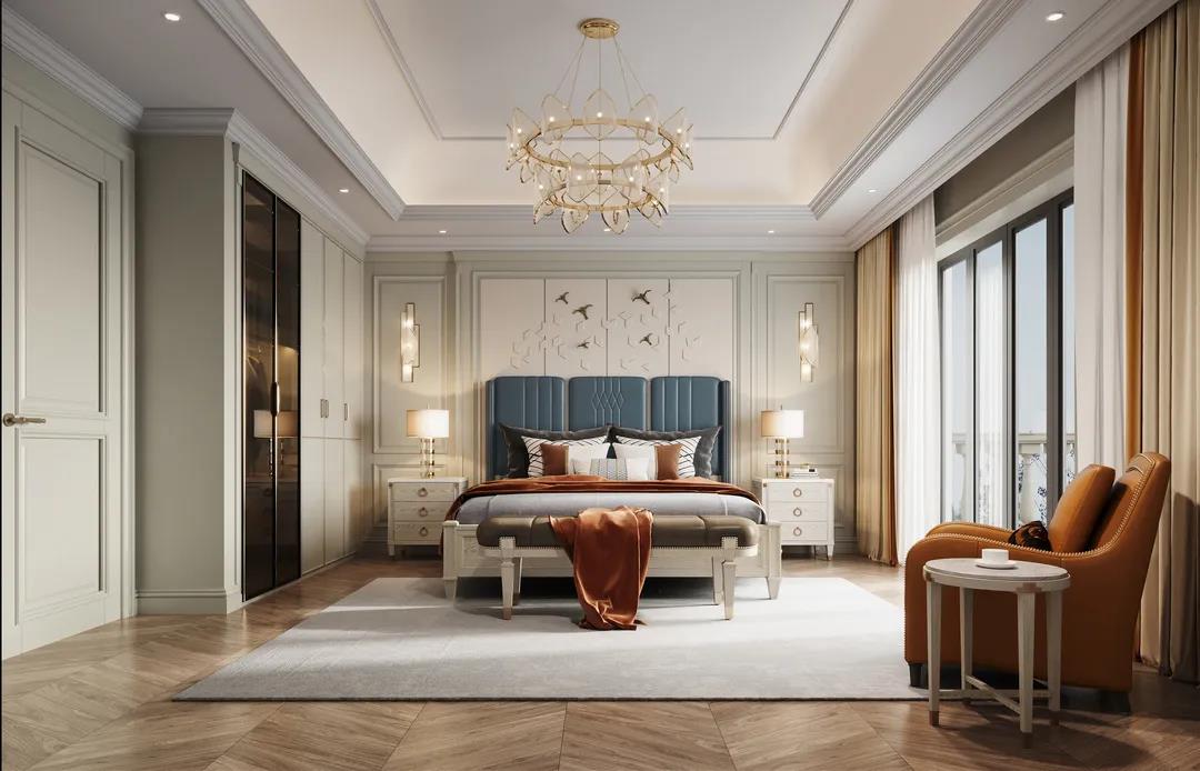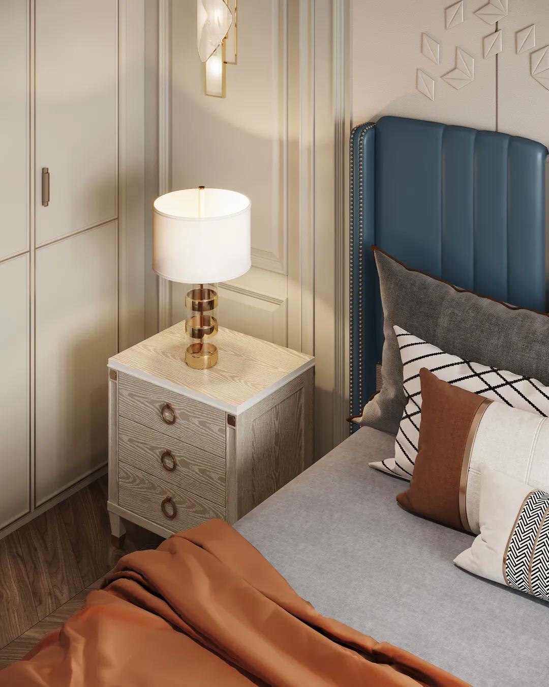 主臥以線(xiàn)條元素做主導(dǎo),軟包的床頭墻面充滿(mǎn)安全感,浮雕的造型給空間布局帶來(lái)了極佳的層次感,以現(xiàn)代美式輕奢框架為主題,融入了美式靈動(dòng)的線(xiàn)條,讓整個(gè)臥室既有時(shí)尚質(zhì)感,又有時(shí)光打磨后的穩(wěn)重。