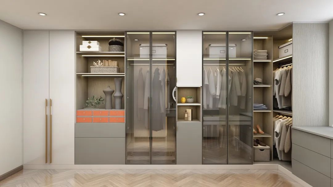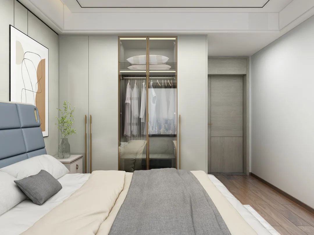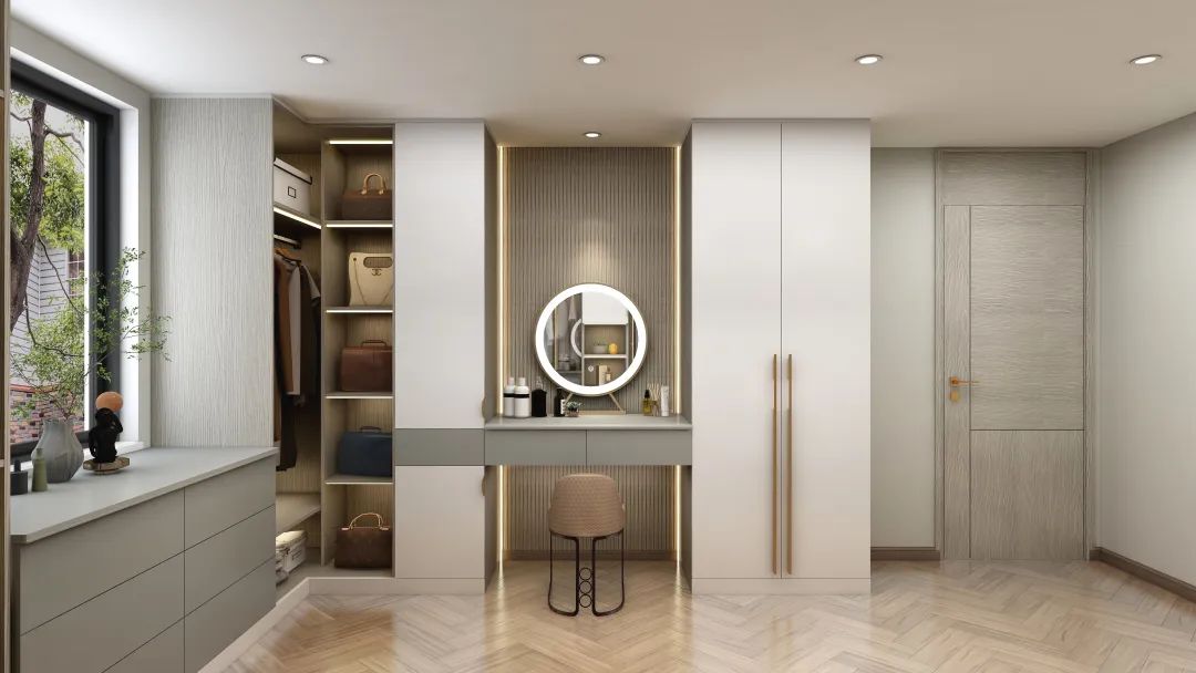 獨(dú)立衣帽間色調(diào)柔和,造型簡(jiǎn)約